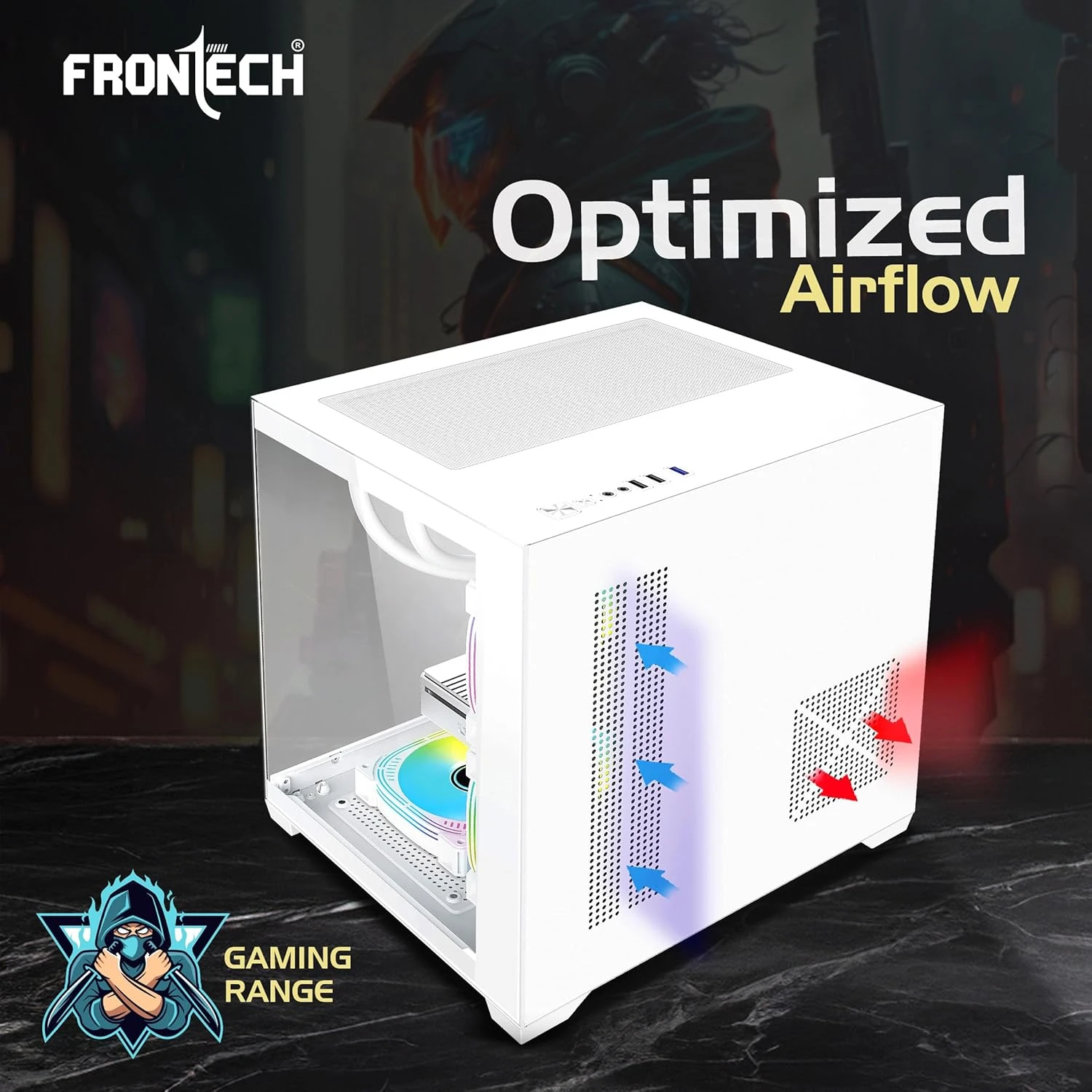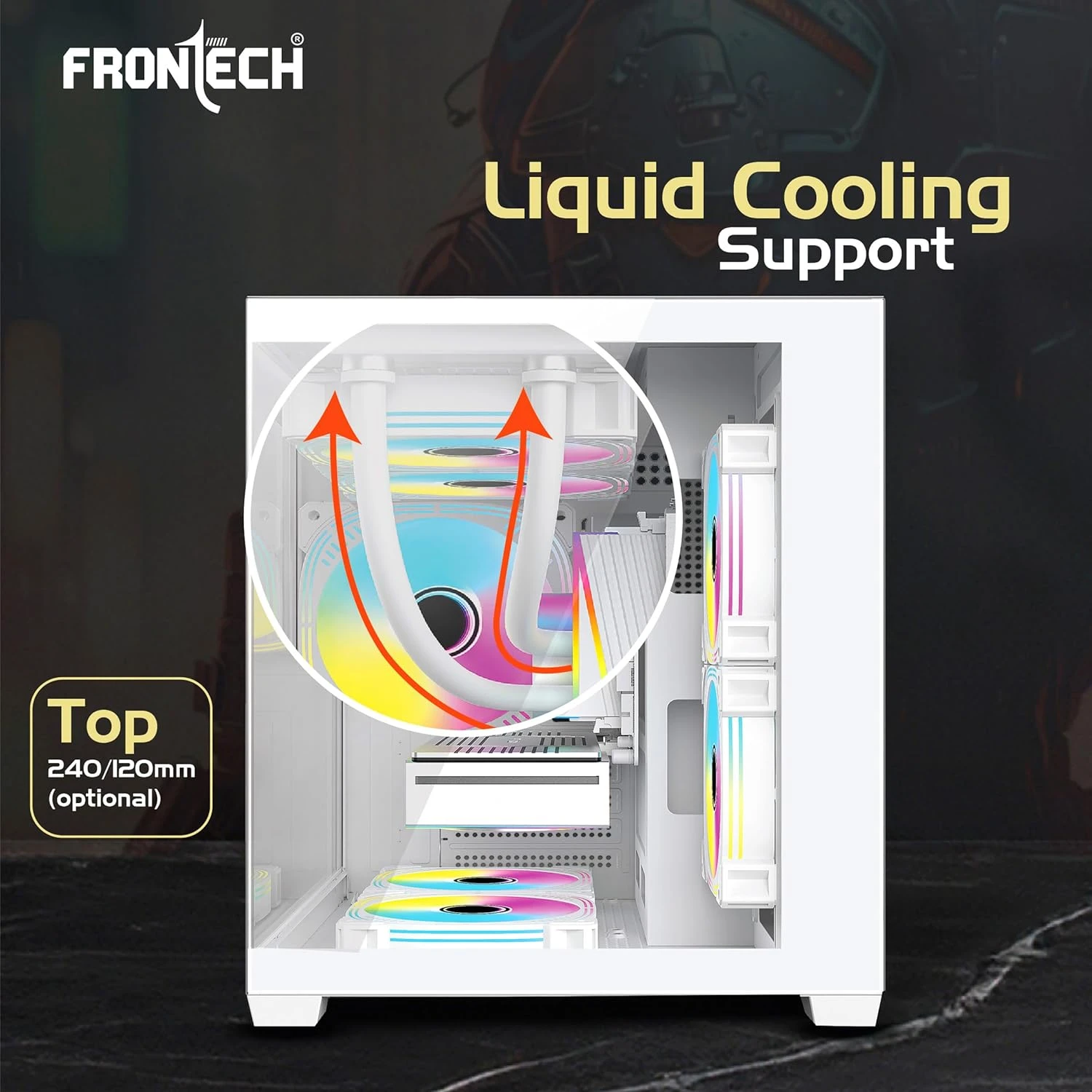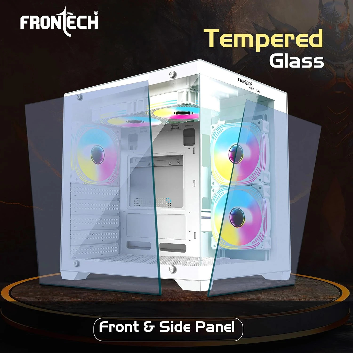 Frontech Nebula Gaming Computer Cabinet | Mid-Tower PC Case | Tempered Glass Front & Side Panel | 5 Pre-Installed RGB Fans | USB 3.0 (FT-4290, White)
